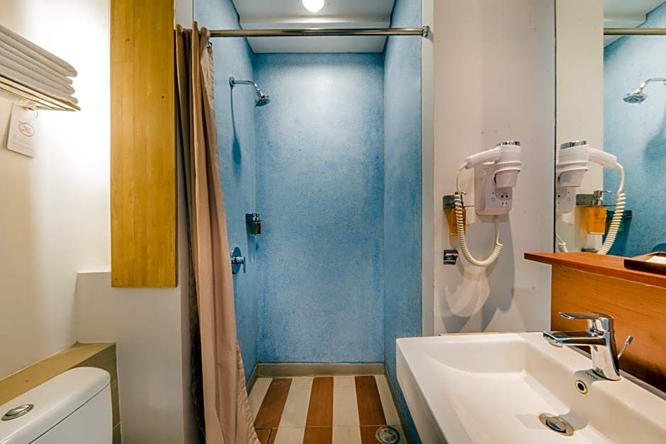 This air-conditioned room features a flat-screen satellite TV, safe and private bathroom with bathrobe and slippers.
